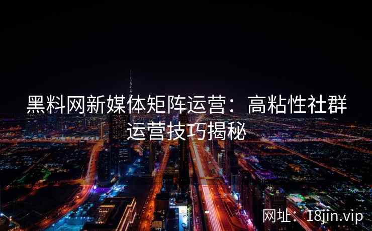 在互联网行业飞速发展的今天,社群运营已经成为了新媒体矩阵中不可或缺的重要组成部分。尤其是在信息爆炸的时代,如何精准地打造和管理高粘性社群,吸引并维系大量粉丝,已经成为了许多企业和品... 在互联网行业飞速发展的今天,社群运营已经成为了新媒体矩阵中不可或缺的重要组成部分。尤其是在信息爆炸的时代,如何精准地打造和管理高粘性社群,吸引并维系大量粉丝,已经成为了许多企业和品牌关注的重点。而作为新媒体行业的领先者,黑料网凭借其创新的运营策略和深耕社群管理,成功构建了一个又一个充满活力、黏性十足的社群。今天,我们将带你揭秘黑料网新媒体矩阵中的高粘性社群运营技巧。